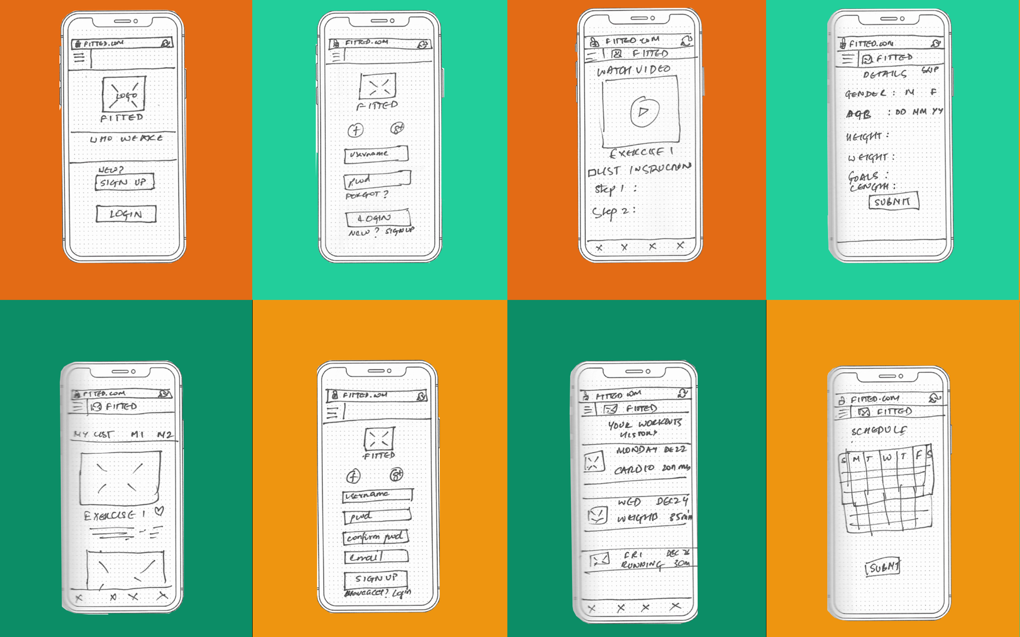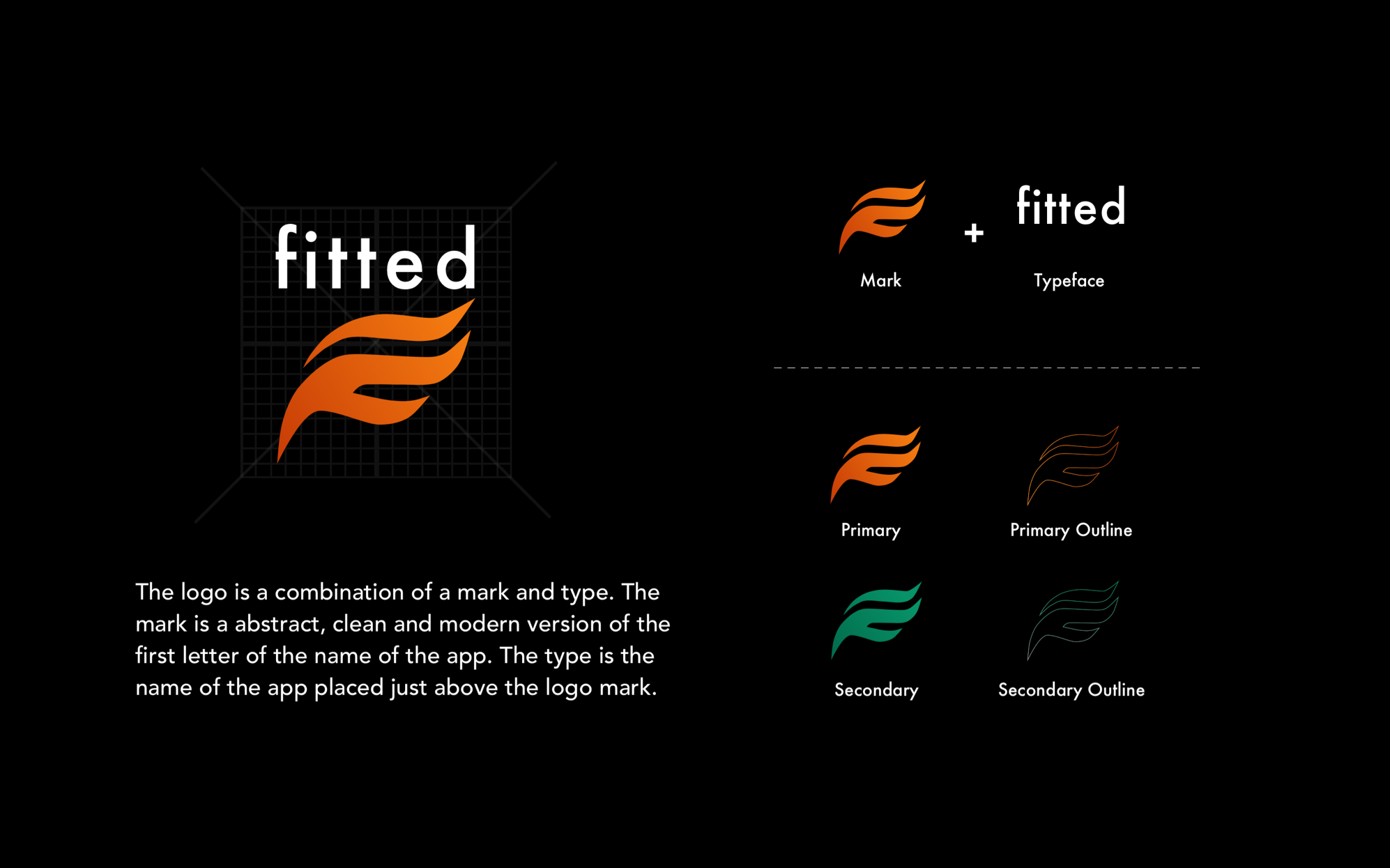 The logo for fitted is a stylized take on the letter 'F'. The use of primary or secondary colors is meant to gather attention to the brand.