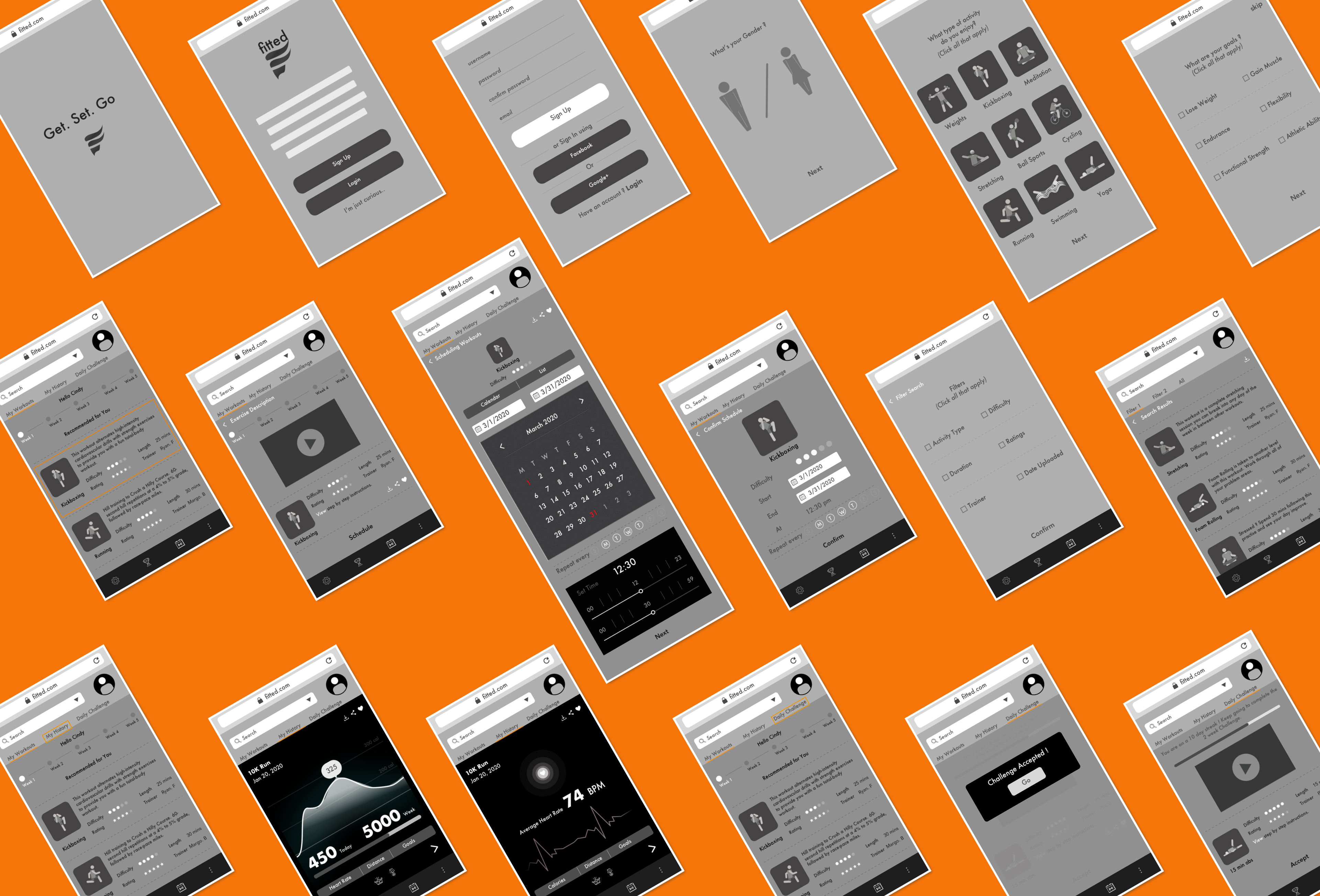 Fitted was created as a requirement for Careerfoundry’s UI for UX Specialization course. Primary specs detailed in the project brief were a mobile first approach to a fitness app that caters to fitness beginners and all levels of tech savvy. The market for fitness apps is oversaturated, with established apps falling into different categories like short workouts, workouts on demand, nutrition, activity tracking, and music. The challenge with Fitted is to stand out while catering to beginners by providing them tools to keep them motivated so the app blends with their lifestyle.