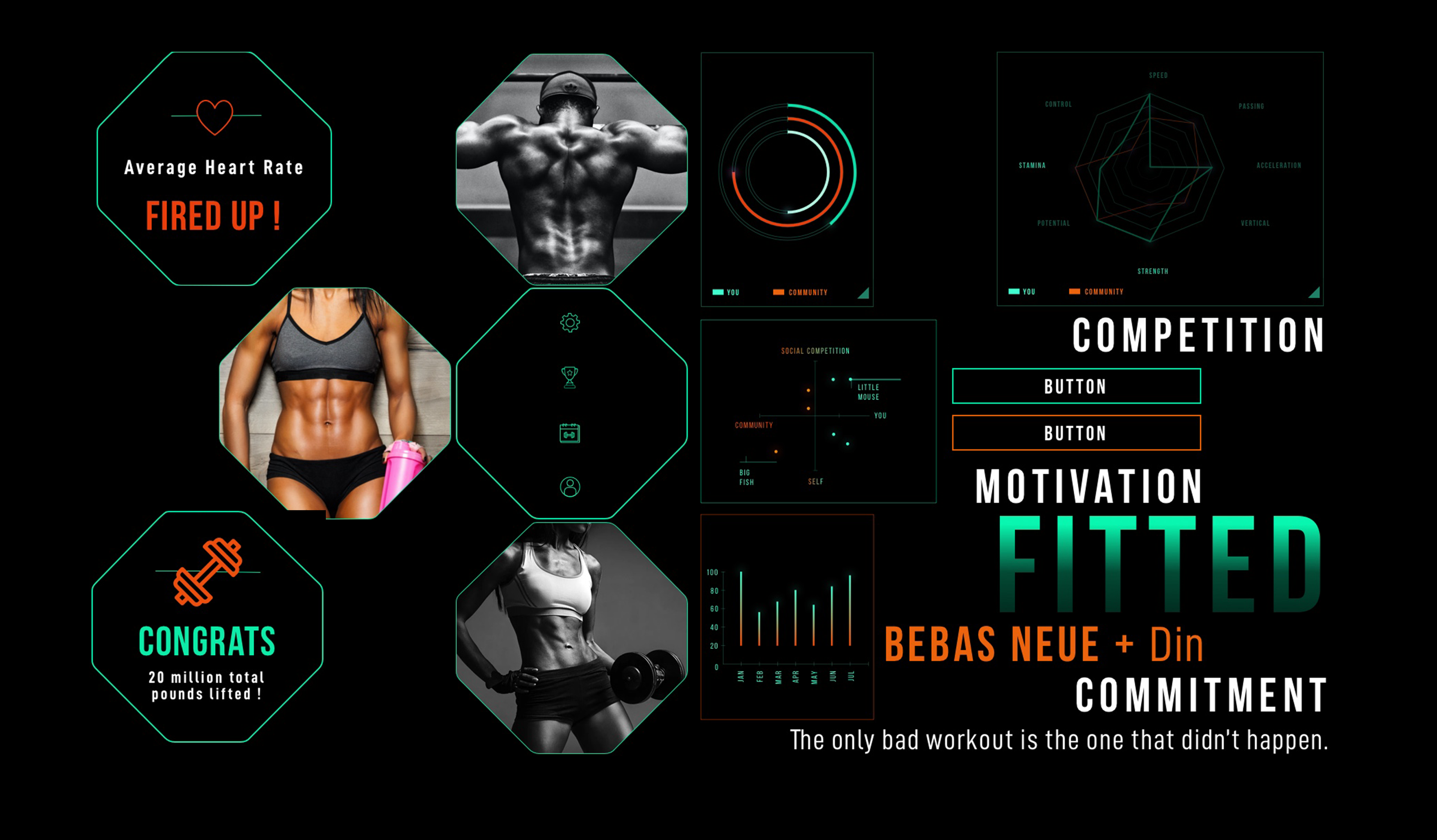 Being new to mobile first design, I took a bit of a risk with Futura as the font family for titles & headers. I spent too much time trying to find the perfect font(s) and ended up second guessing myself a lot. While I am happy with Avenir as the secondary font choice, I am not sure Futura was the correct choice for Fitted and if a second font was required at all.