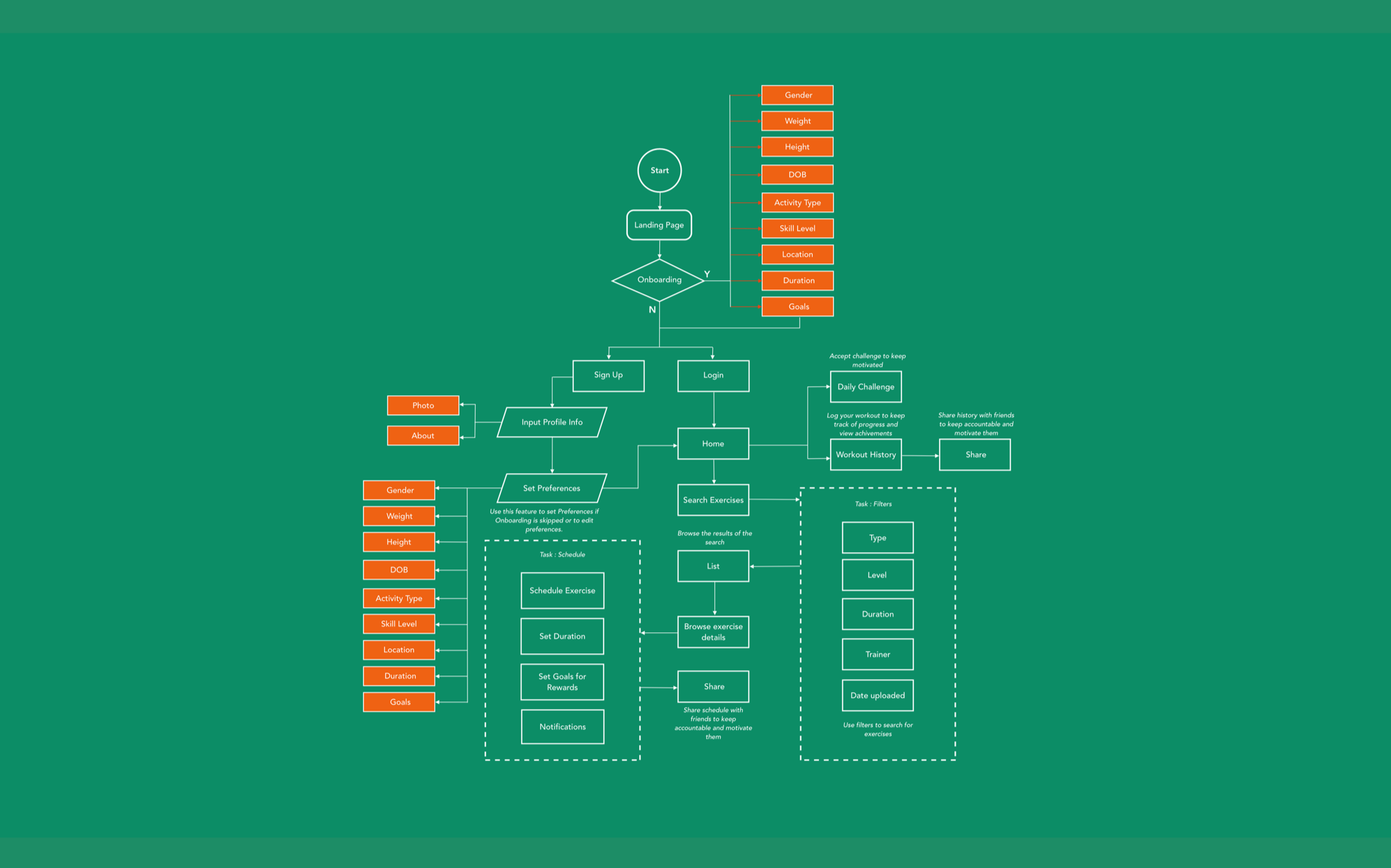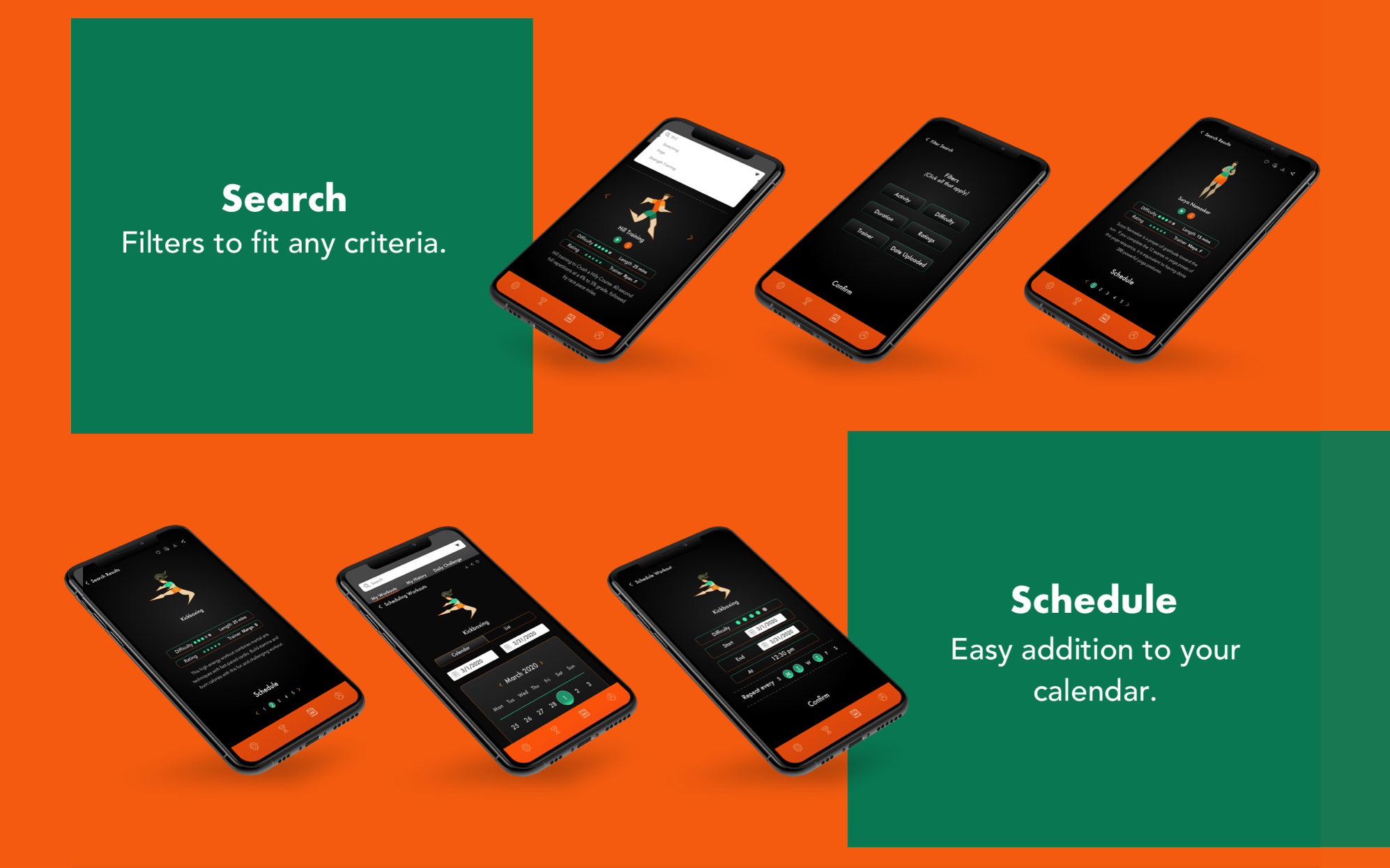 Options. Options. Options. The use of multiple filters is key to choices that a user can make with Fitted. A strong search feature will help identify user likes and dislikes and help with identifying an exercise routine that the user is willing to adhere to.